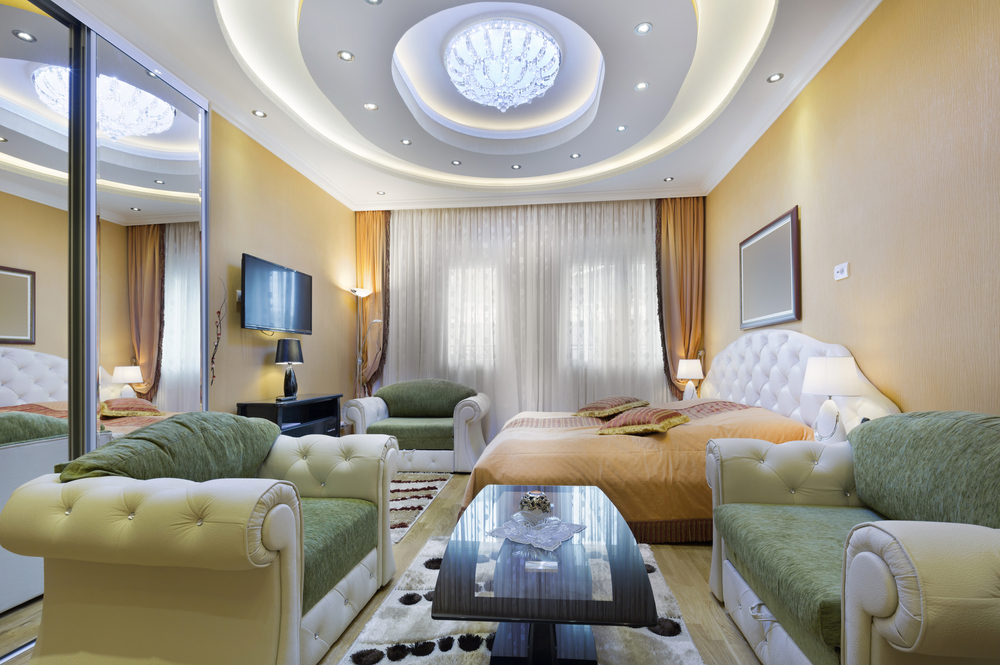Suspended round ceiling designs are versatile and go well with a vast majority of the decors such as modern, neon, casual and formal. They are, however, ill-advised for art-deco interiors that rely heavily on the traditional style of architecture. These contrasting styles do not blend well.