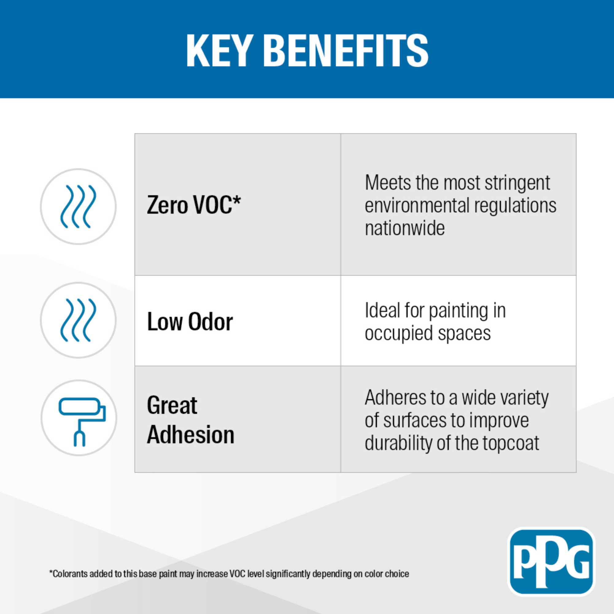 SPEEDHIDE® Zero Interior Latex Sealer is a professional grade zero-VOC* interior acrylic primer formulated to meet the performance requirements of professional applicators. SPEEDHIDE® Zero Interior Latex Sealer can be used as a primer under alkyd or latex finish coats and is ideal under a variety of finishes. This zero-VOC*, low-odor paint is ideal for painting occupied spaces while delivering the durable product performance required. It provides excellent sealing properties and is recommended for use on properly prepared interior wallboard and drywall surfaces, wood, and oriented strand board or particle board, and masonry.
